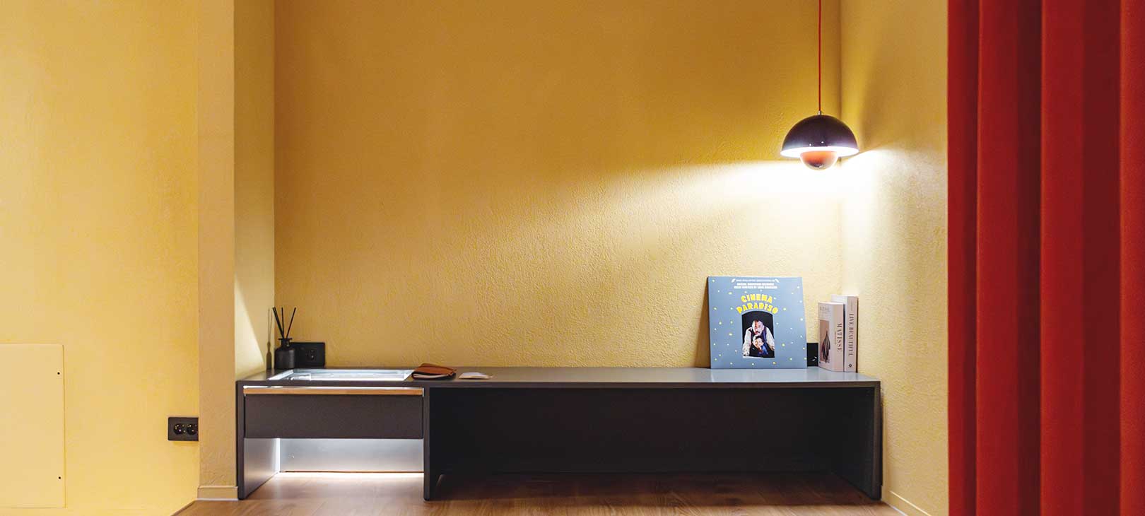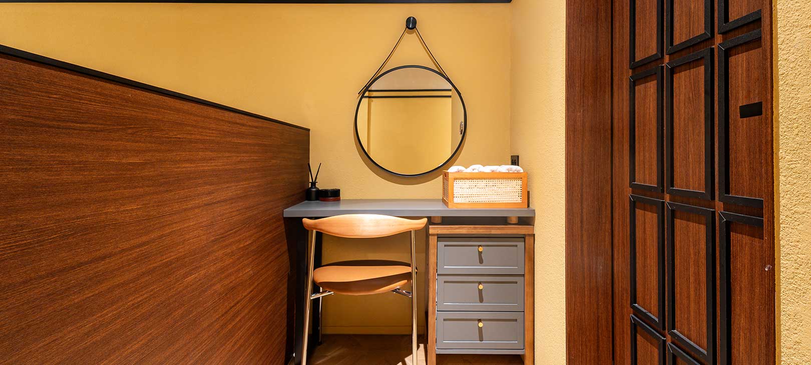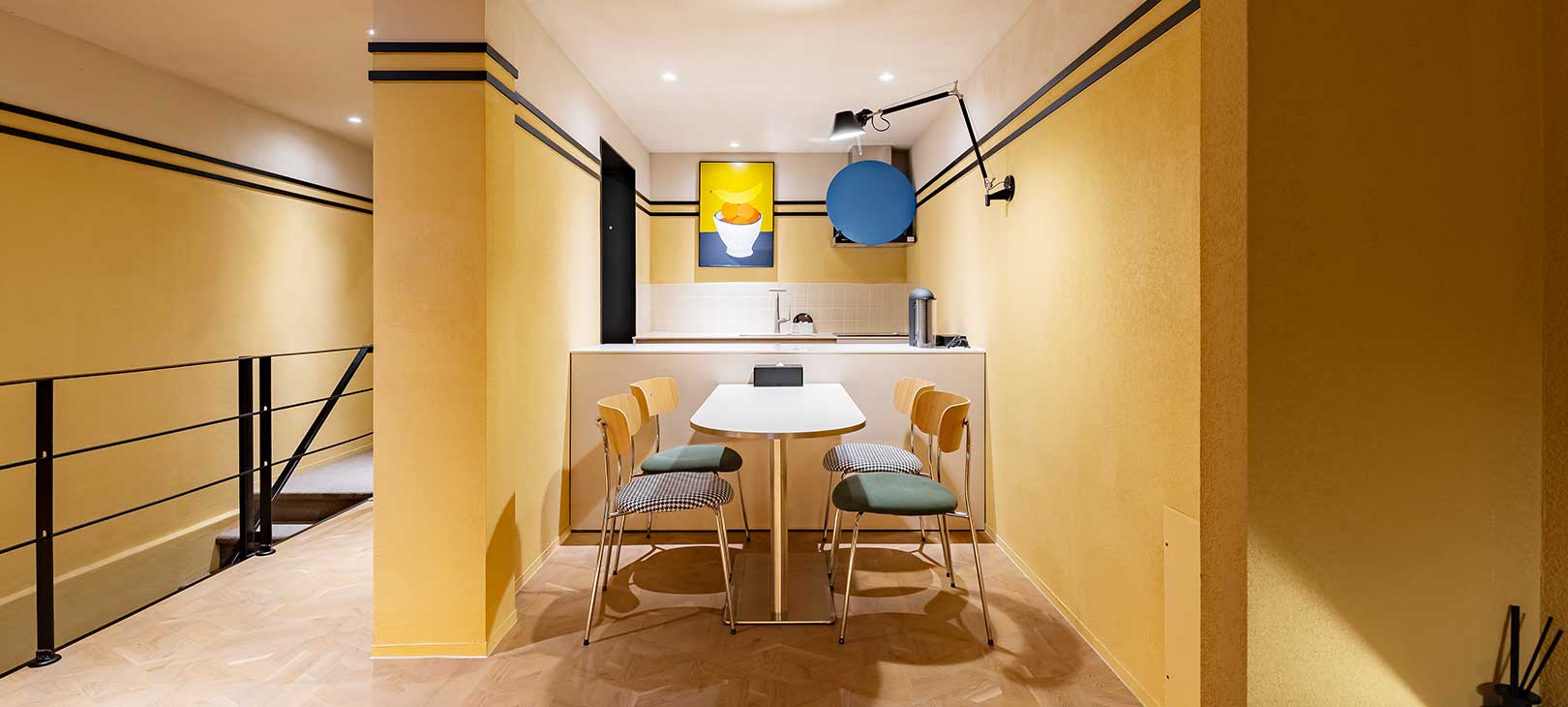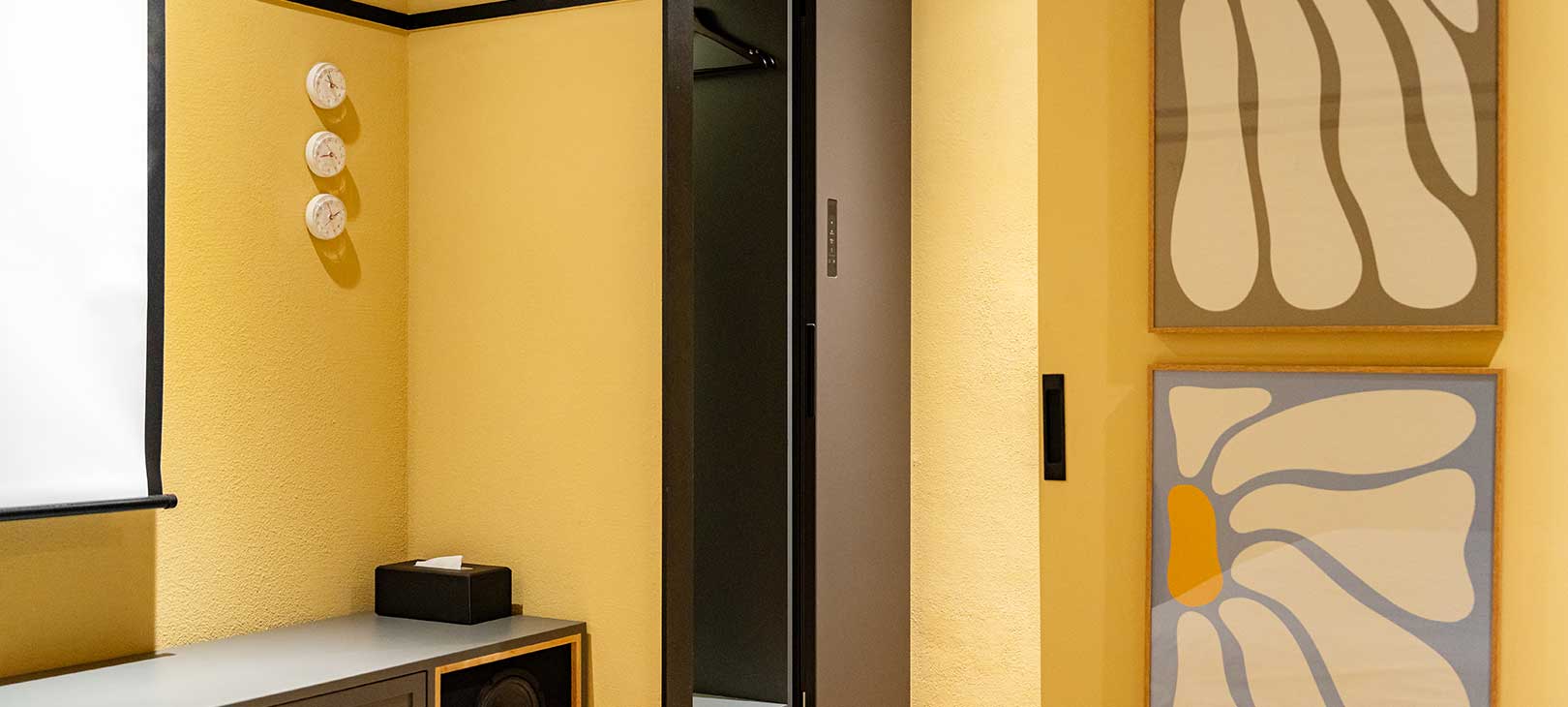 군산의 레트로 무드를 담은, 영화 같은 하루따뜻한 옐로우 컬러가 공간 전체를 감싸며 군산의 레트로 감성을 은은하게 풀어냅니다.