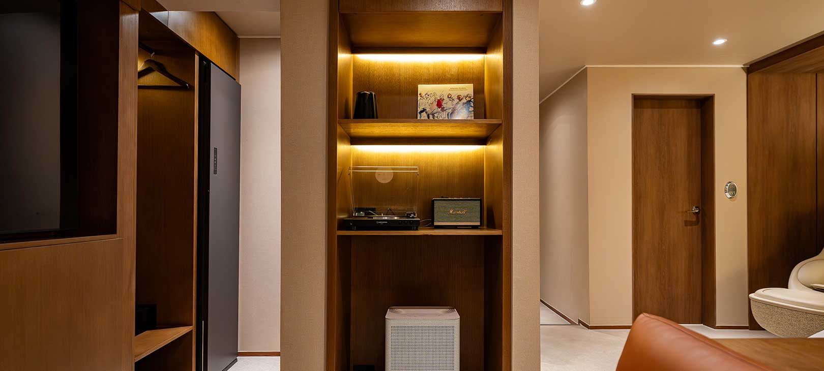 고요와 온기가 머무는 시간따뜻한 우드톤과 은은한 조명이 하루의 끝을 부드럽게 감싸줍니다.