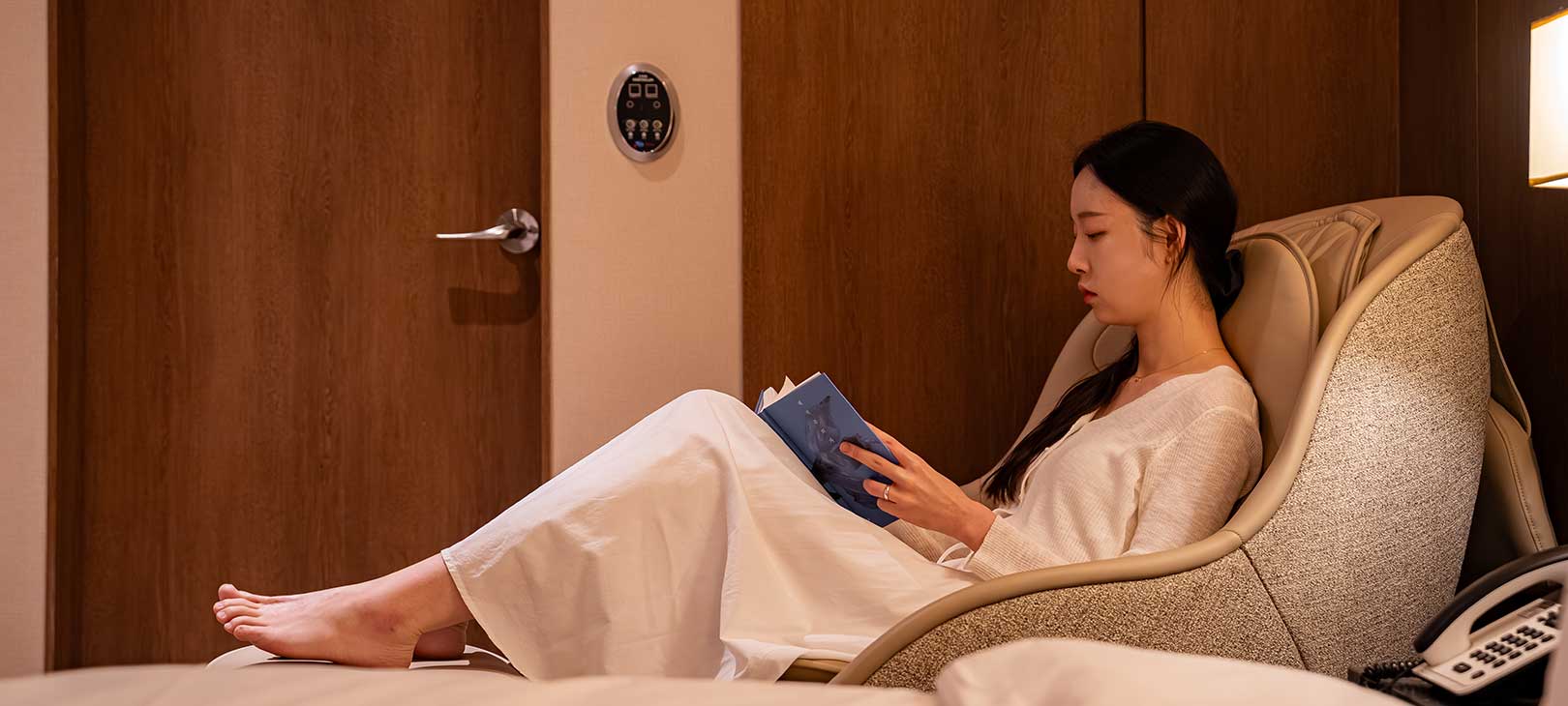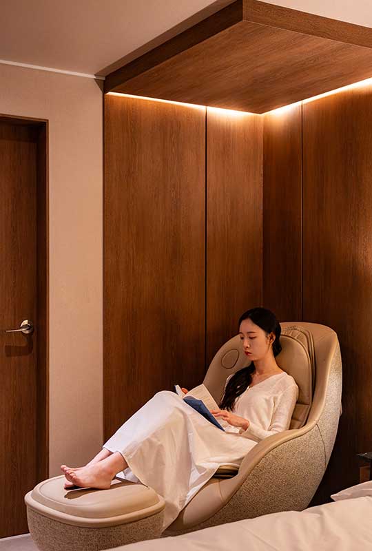 잠시 기대어 눈을 감으면 쌓인 긴장이 천천히 풀려나가고, 스팀 사우나 속 온기가 그 여운을 이어줍니다.