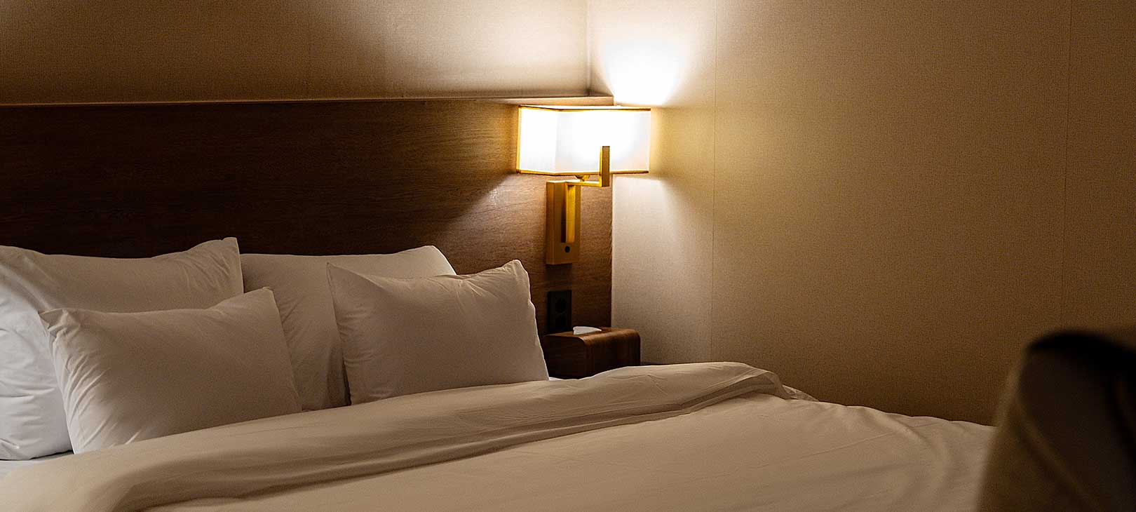 빛은 잔잔하게 머물고, 벽면을 따라 흐르는 조명이 하루의 끝을 부드럽게 감싸줍니다.