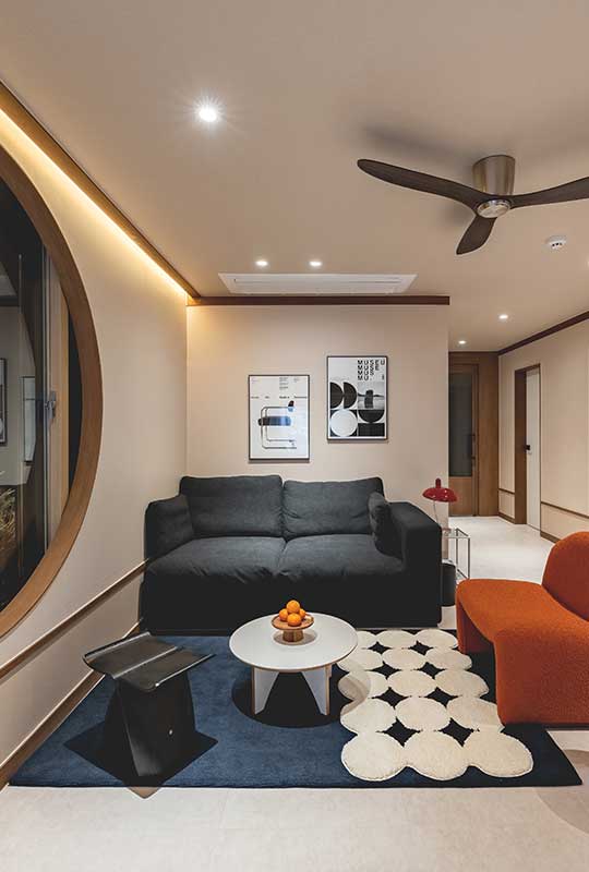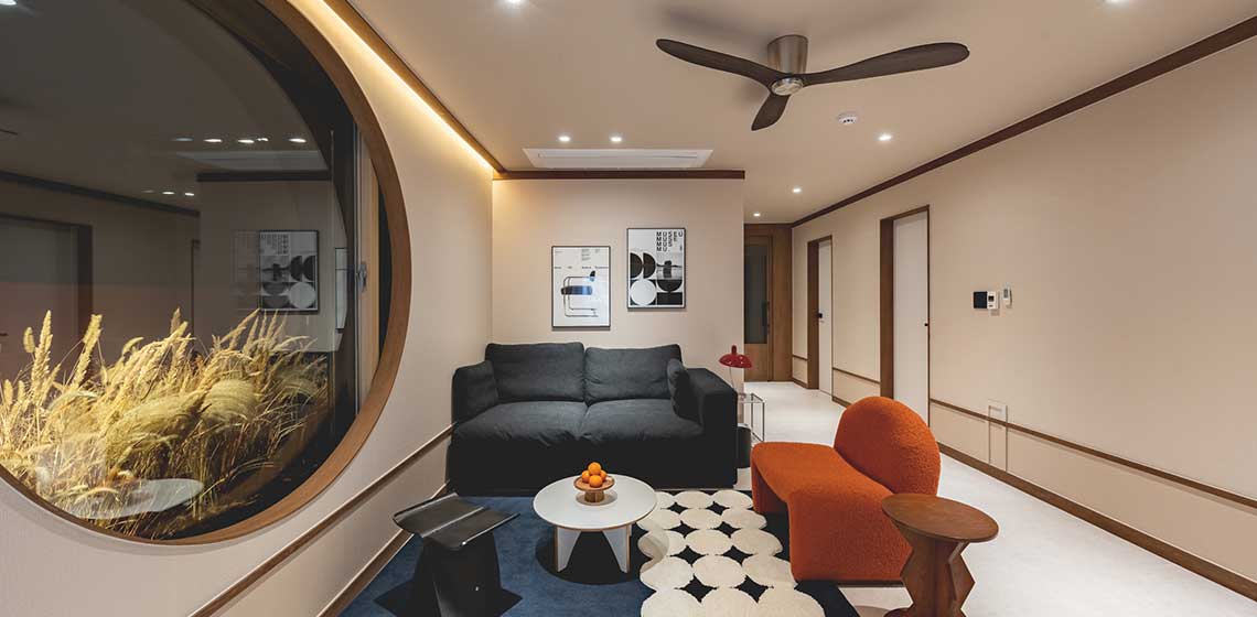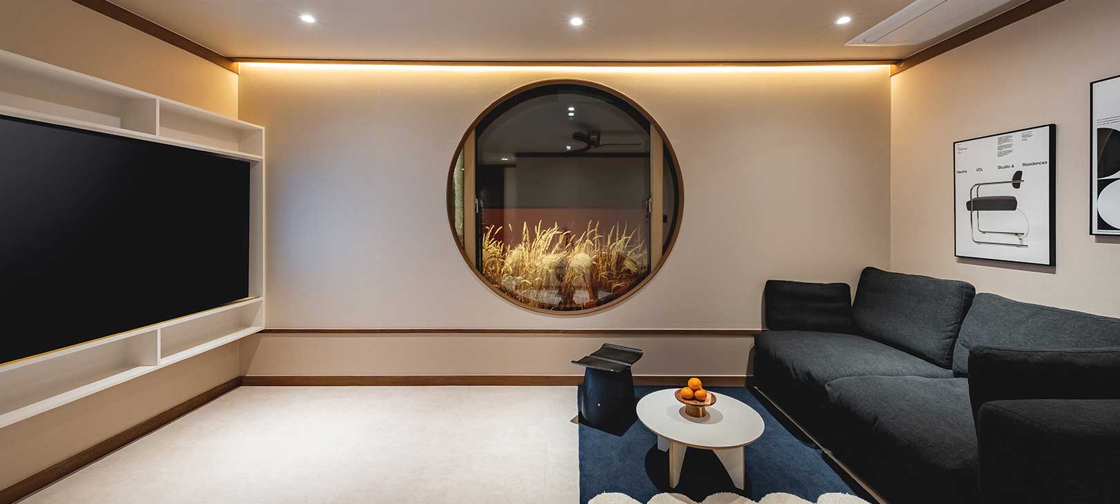 둥근 프레임의 창을 통해 군산의 달빛이 스며들고, 밤에는 그 빛이 식물과 어우러져 가장 아름다운 장면을 만들어냅니다.