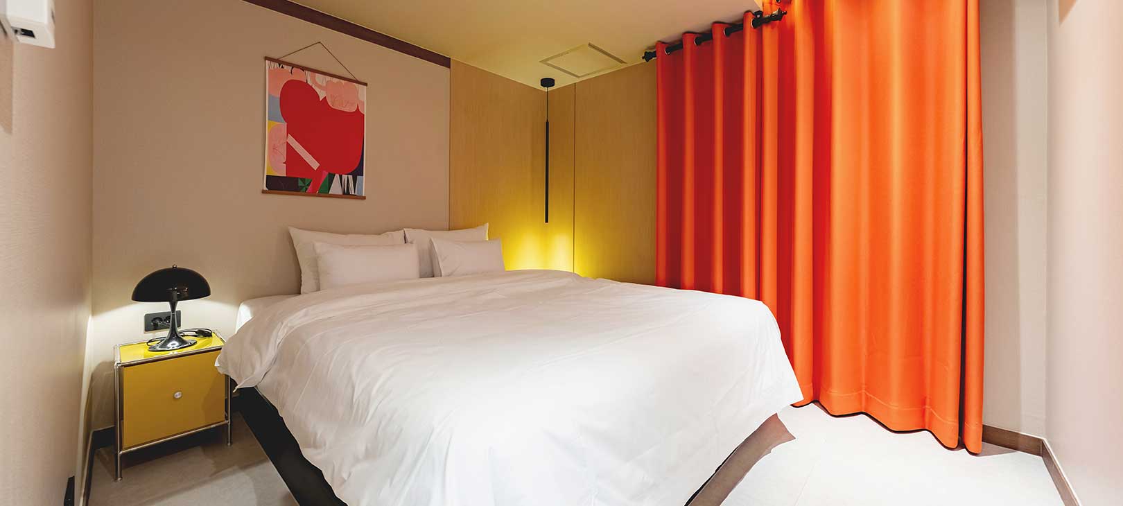 객실마다 커튼의 색을 달리해 각 공간이 가진 개성을 살렸어요.