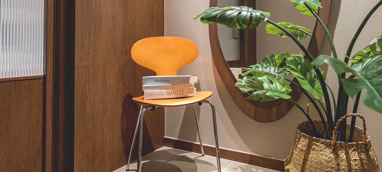 그 앞에는 식물과 작은 오브제가 놓여 있어 들어오는 순간부터 '환대'의 마음이 느껴지죠.