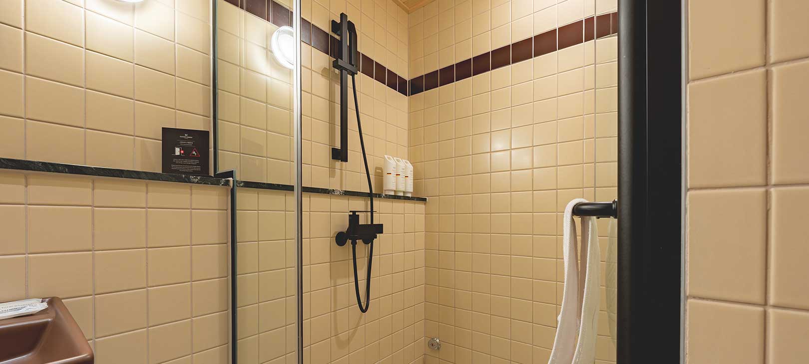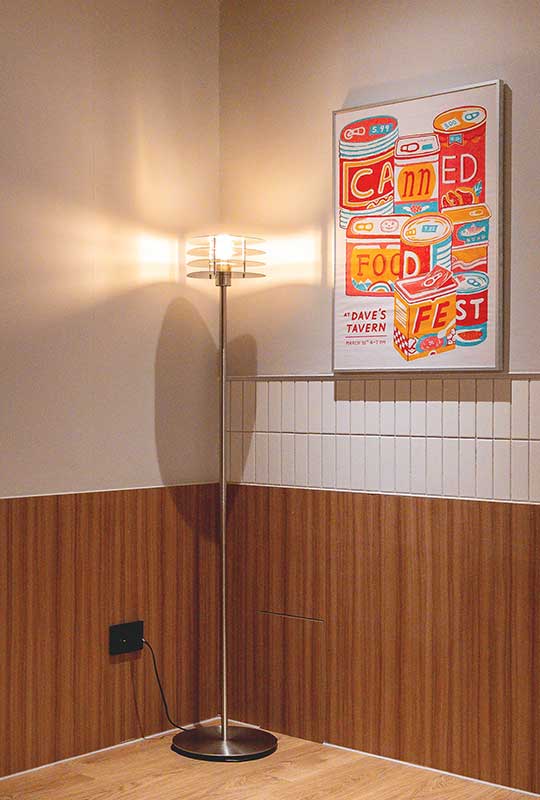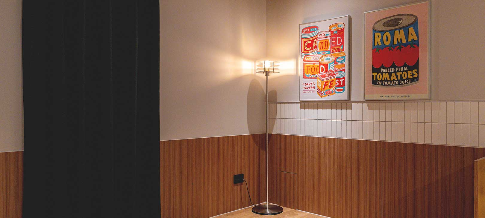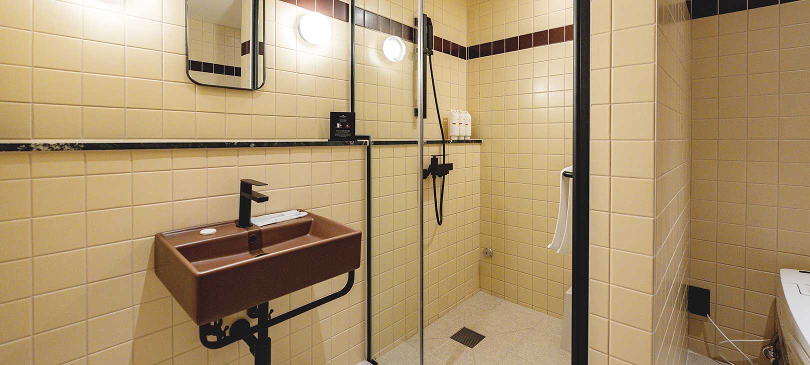 잔잔한 빛이 타일 위를 스치며 이 공간의 따뜻한 레트로 무드를 완성합니다.