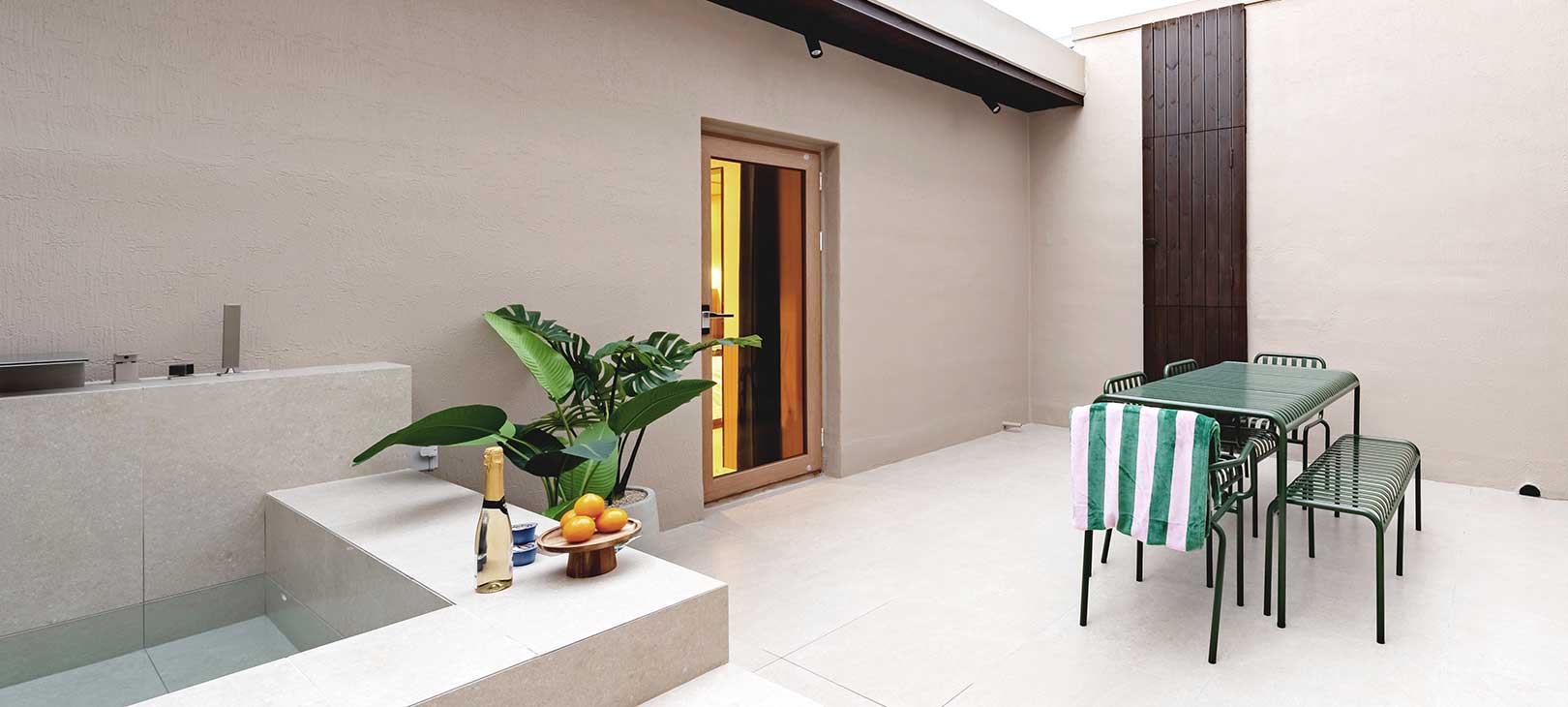 그리고 다시, 그 온기를 품은 채 문을 열면 초록빛으로 감싸인 자쿠지가 기다리고 있습니다.